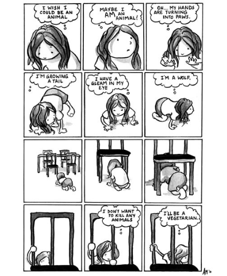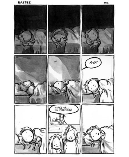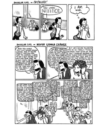 This collection also introduces Lil' Amy, who stars in a series of autobio comics about my childhood. These are sweet moments I remember---playing with Happy Meal toys to my favorite Irish Rovers record, pretending to be a wolf (did it all the time, yo), waiting for Easter morning. Poignant, vivid stories, including being dumbstruck with awe after catching a parent in a sacrificing moment. And one five-page story that brings together Lil' Amy and Bachelor Girl.