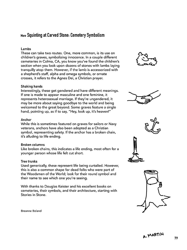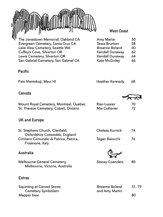Return to the graves! CEMETERY MAPS is back with a second volume of hand-drawn maps of beloved cemeteries--some historic, some well known, some tiny and forgotten. 33 artists, historic preservationists, taphophiles, gravestone fanatics, and dedicated cemetery wanderers drew a map of a cemetery close to their heart in this beautiful collection. Read about ghost stories, local heroes, teenage antics, druids, and more!
